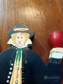set porta candele vintage in legno dipinto a mano disegnato da Lizzie Velander,stile svedese nordico anni 70/80