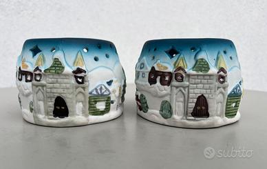 Vendo 2 gadget Natalizi Agip edizione 2003. I porta lumini sono nuovi, in ceramica, alt. cm. 6, diametro max. cm.9, disponibile solo 1 scatola. Gradita consegna di persona oppure spese a carico del compratore e venduto come