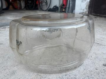 Vendo vecchio porta caramelle Ambrosoli da drogheria in vetro con tappo in alluminio. Nessuna crepa, necessita solo di una bella lavata. Dispongo fino a 3 pezzi. Prezzo 70 euro cad.