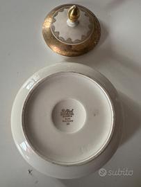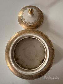Porta caramelle o porta gioie Royal Porzellan Bavaria vintage bianco con profili oro. Altezza 10 cm, diametro 15 cm.