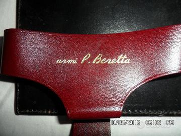 L'interno è di colore nero e a destra si trovano 2 porta carte, sagomati e di colore bordeaux, uno riporta la scritta in oro "armi P. Beretta" e al centro c'è l'anello porta matita