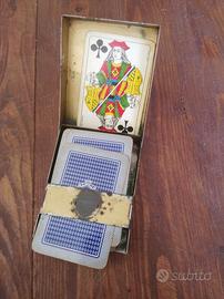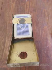 Vecchio porta carte da gioco in metallo compreso mazzo di carte, in discrete condizioni.Per gli altri annunci digitare SPQR.