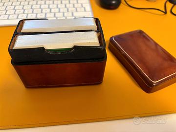 Porta carte da gioco con due mazzi di carte ancora incellophanati. In legno, marca Dal Negro