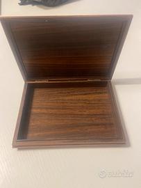 Porta carte da gioco in legno con piastra in argento 800 firmata Camilletti. Piccoli segni di usura