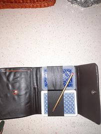 astuccio porta carte comodo e tascabile con la sua matita interna e due mazzi di carte 32 carte ciascuno tutto integro