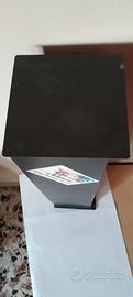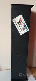 Vendesi elegante e robusto porta CD a colonna realizzato interamente in metallo (ferro/acciaio) con finitura nero opaco. L'oggetto presenta un design geometrico e minimalista, tipico degli anni '90, perfetto per arredamenti in stile industrial o moderno. Capacità: Può ospitare fino a 30 CD (15 nella sezione superiore e 15 in quella inferiore). Struttura: Solida costruzione a colonna con base e top quadrati. Il corpo centrale è caratterizzato da alette metalliche inclinate che permettono un inserimento facile e una lettura chiara dei titoli sui dorsi dei CD. È presente un adesivo vintage a tema Formula 1 (Marlboro McLaren Peugeot, stagione 1994) che ne attesta l'epoca e aggiunge un tocco "racing" da collezione, ma è facilmente removibile se si preferisce un look più pulito. Versatilità: Grazie al suo peso e alla stabilità della base, può essere posizionato sia a terra che su una scrivania o mobile TV. Dimensioni indicative: Altezza: 60cm Base: 15x15 cm