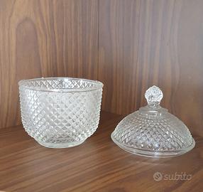 Scatola porta cioccolatini con coperchio, in vetro diamantato.