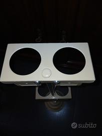 - Supporto in metallo cromato e plastica beige.