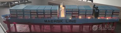 modello artigianale di nave porta container MAERSK, progettato interamente in CAD e realizzato con stampa 3D in PLA.