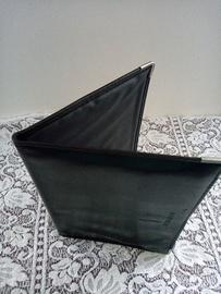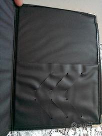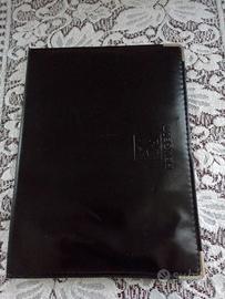 porta documenti nero marchiato Peugeot , appartenente ad auto degli anni 90, ,all'interno una tasca grande e una piccola e altri scomparti per tessere, chiuso a libro misura 17 per 23 cm.