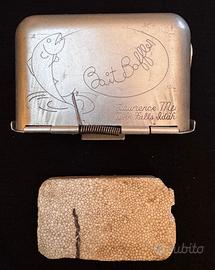 Porta esche d’epoca originale denominato “Bait Buffer”, prodotto da Lawrence Mfg. Co. – Twin Falls, Idaho (USA), risalente con buona probabilità alla fine anni ’40 / primi anni ’50.