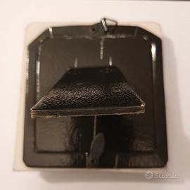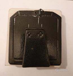 Gancio per la possibilità di appendere. Supporto inclinato per l'appoggio.