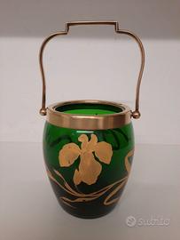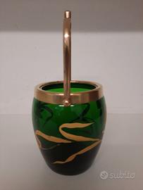 Vendo bellissimo porta ghiaccio realizzato in cristallo di colore verde e decori dipinti a mano a tutto giro in oro a rilievo.