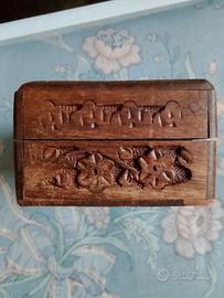 porta gioie in legno intarsiato antico