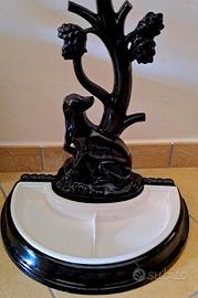 unico e raro ne suo genere .in ghisa lavorata, intarsiato e verniciata e con piatto raccogli goccia in fine porcellana bianco