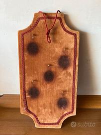 Vecchio espositore porta orologi da taschino da parete Misure : 46x24 In velluto e legno Usato con segni come da foto Integro con lieve scucitura della trina visibile in foto