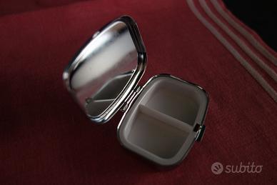 Porta pastiglie in acciaio. Interno del coperchio a specchio.