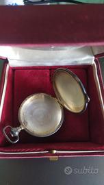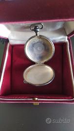 Originale porta pastiglie, a forma di orologio da taschino, in metallo argentato (prob. nichel), della.prima metà del 900; diametro 4 cm