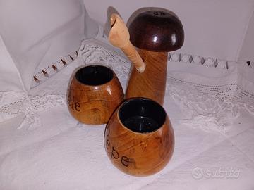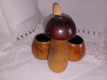 Porta sale e pepe in legno a forma di fungo. h 15 18×13