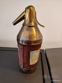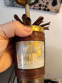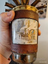 Bellissimo porta sigarette in ottone, anni 50/60, rivestito in pelle con disegni invernali, funzionante, completo, con delle piccole ammaccature nella punta.