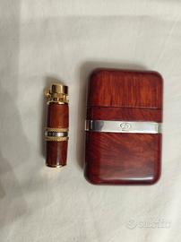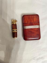 porta sigarette e accendino vintage in radica di noce , argento e otone