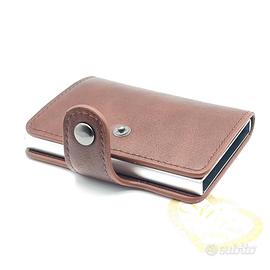 Elegante e pratico portafoglio / portatessere a clip da uomo in pelle marrone.