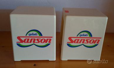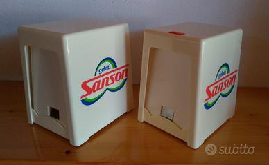 Coppia di porta tovagliolini da bar in plastica della gelati Sanson. Usati, ma ancora in buone condizioni. Il prezzo si riferisce alla coppia