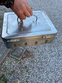 Vecchio porta utensili da medico / chirurgo adatto a vecchie sterilizzatrici , acciaio chirurgico