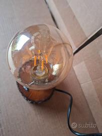 Lampada da tavolo con un design unico che unisce elementi naturali e un tocco retrò. La base in legno grezzo dona un aspetto rustico, mentre il globo in vetro trasparente racchiude un'illuminazione calda. - Base in legno con finitura naturale. - Globo in vetro trasparente. Prodotto a mano, artigianale. Legno trattato con prodotti specifici di qualità. misure: altezza cm 3 diametro cm 9,5