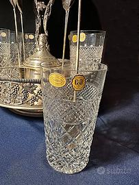 Si accettano offerte per questo prestigioso porta bicchieri in argento 800 dotato di cucchiaini che svolgono anche la funzione di cannucce. Completano il set 6 bicchieri in cristallo di Boemia che ben si adattano alla conformazione del porta bicchieri.