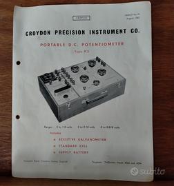N. 1 Croydon Precisione Instrument Co. PORTABLE D.C. POTENTIOMETER Type P.3 ANNO 1962 vedi foto PREZZO 49 euro