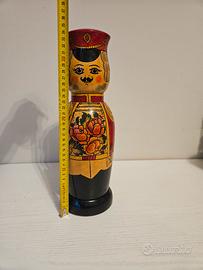 Portabottiglie di Vodka vintage, dipinto a mano, a forma di matrioska, di manifattura russa, del secolo scorso.