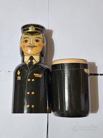 Portabottiglie vodka in legno dipinto a mano raffigurante un ufficiale di marina. Provenienza Russia