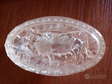 Portaburro anni 50 in Vetro con mucca in rilievo