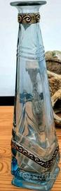 Portacandela bomboniera celeste in vetro soffiato lavorato