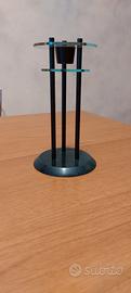 elegante portacandela,con base in marmo ,i 3 supporti sono in metallo e anche il contieni candela,mentre i 2 cerchi sono in plastica dura,la base misura cm 9 di diametro l altezza totale cm 16,foro per candela cm 2,5