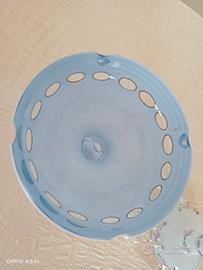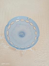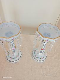 Portacandela o porta frutta vintage in cristallo di boemia da bianco a rosa dipinto a mano con splendide gocce di cristallo, in ottime condizioni.