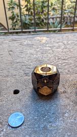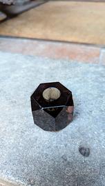 Portacandele in cristallo molato con sfaccettature geometriche color fumé anni '50.