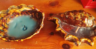 Portacandele vintage ceramica smaltata forma conchiglia (con candela) 2 pezzi anni '70 13 - 14 cm lunghe