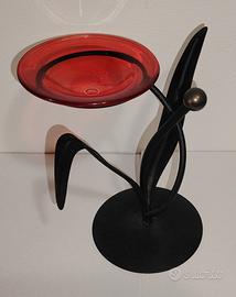 Portacandele in Metallo ferro battuto, con coppa in vetro,