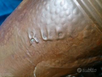 Vendo antico porta carbone in rame ed ottone, inciso, datato e firmato. Se interessati invio misure ed altre foto.