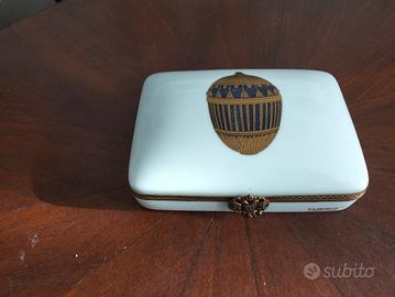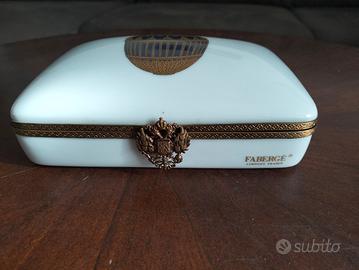 VALUTO OFFERTE per Portacarte da gioco Fabergé in porcellana di Limoges dipinto a mano e argento dorato.