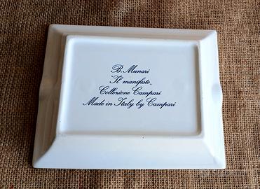 Vendo vecchio/vintage posacenere della CAMPARI SODA, disegnato da BRUNO MUNARI per campari, detto " il manifesto ". In Ceramica, Nuovo, con la sua scatola. Misure 20 x 17 cm. Pubblicitario per collezionismo o arredamento bar. Ottima idea regalo