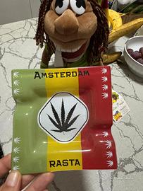 1)Portacenere in vetro con design ispirato alla Giamaica e ad Amsterdam.