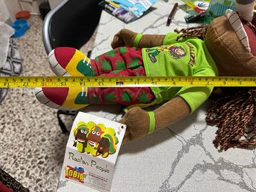 2)Peluche a tema Giamaica, con capelli intrecciati e cappellino rosso.