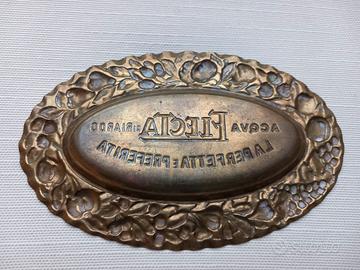 Posacenere pubblicitario Acqua ELECTA (ora si chiama Ferrarelle!), Fonte Riardo, in ottone, dimensioni cm. 15x9,5 e peso gr.37 condizioni come da foto, vendo ad Euro 20 + imballo e spedizione raccomandata tracciabile con Poste Italiane ad euro 8.