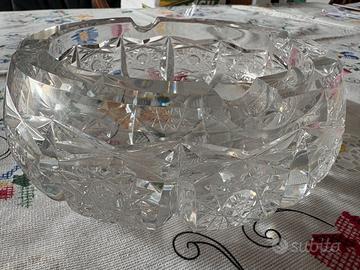 Vendo portacenere vintage in cristallo molato, molto pesante e di ottima qualità, con elegante decorazione a stella e 3 incavi per sigaretta. Lavorazione profonda tipica del cristallo boemo / centro‑europeo, anni ’60/’70. Oggetto decorativo, ideale anche come centrotavola o svuotatasche.