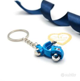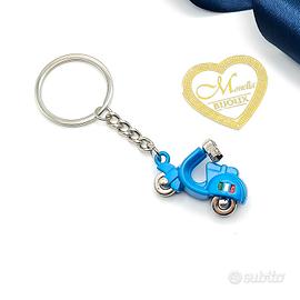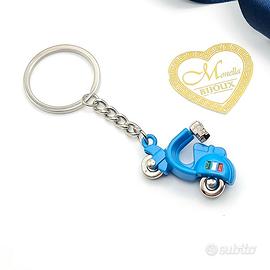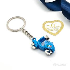 Bellissimo portachiavi a forma di Vespa azzurra, con bandiera tricolore.