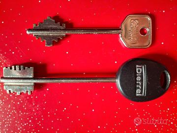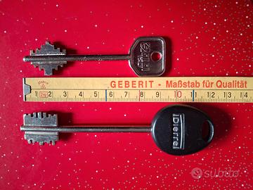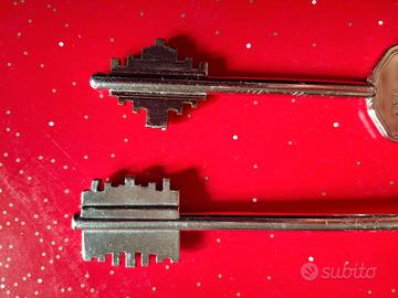 Portachiavi con scoubidou e due chiavi da collezione come da foto. Le chiavi sono autentiche, molto belle di marca e ben conservate, lunghezza rispettivamente di 9 cm e 12 cm. Per arricchire la tua collezione, oppure da usare come portachiave originale insieme alla tua chiave “vera” di casa o dell’auto.