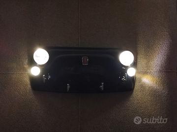 portachiavi da parete Fiat 500 blu scuro in metallo larghezza 21 cm e altezza 10 cm con luci a led a batteria